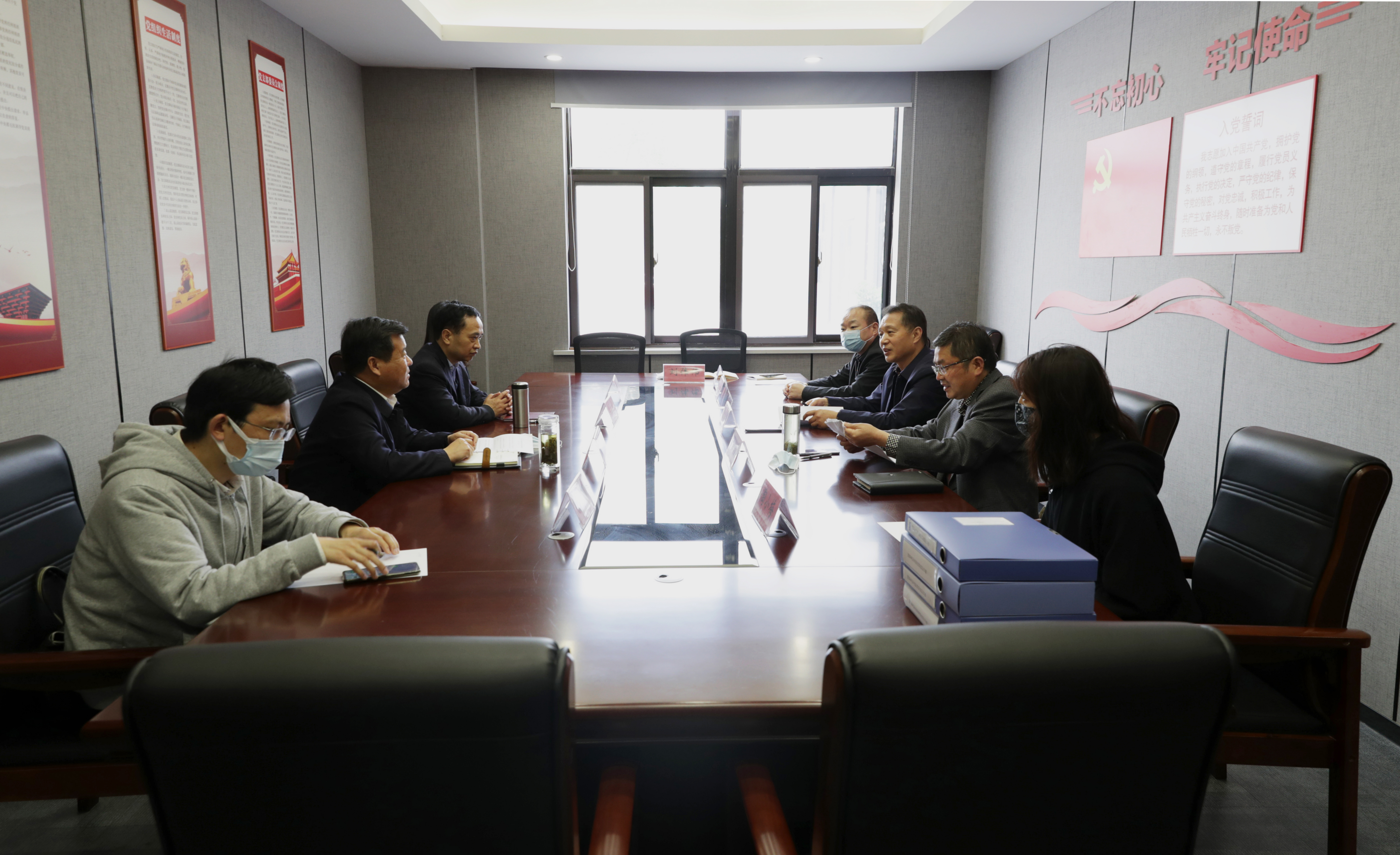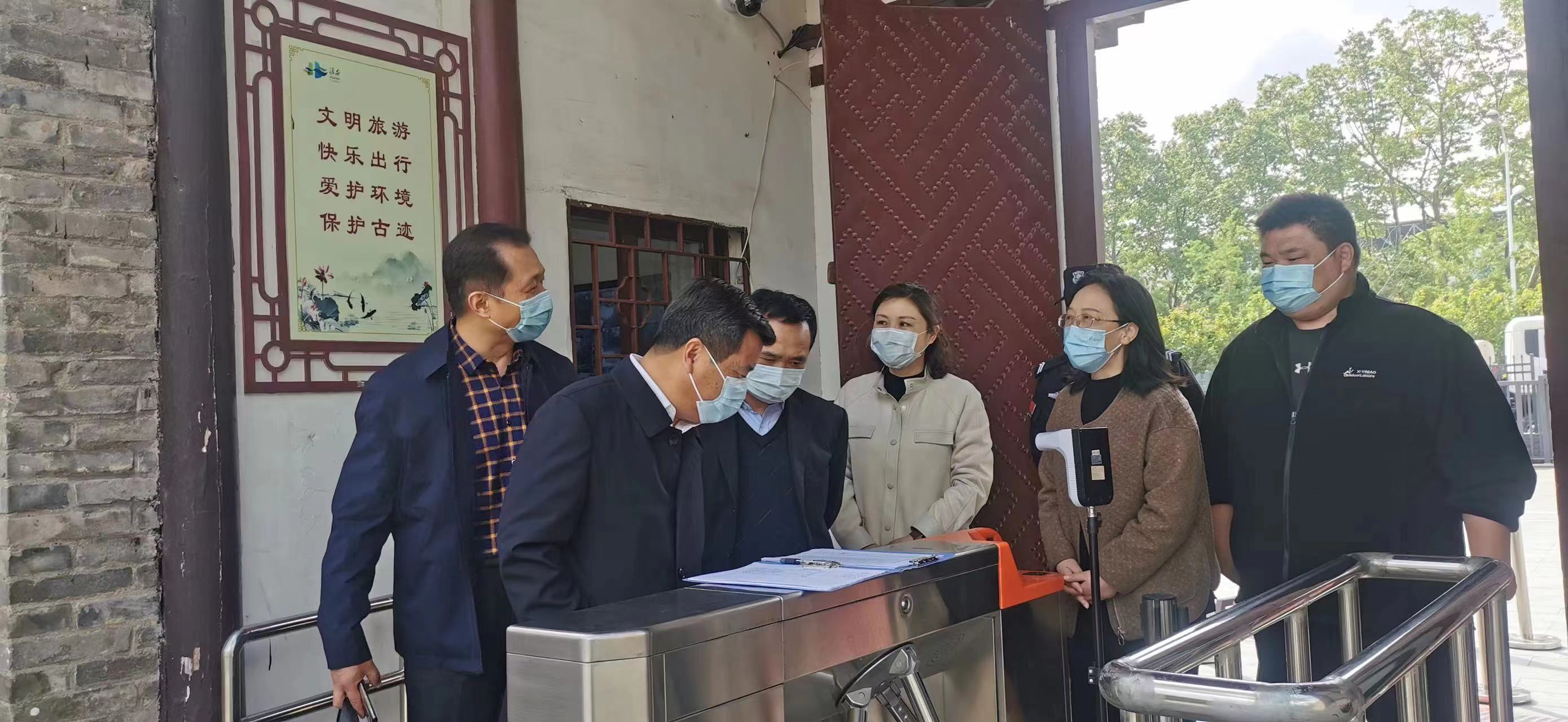 4月29日上午,市纪委监委派驻第十四纪检监察组吉士忠组长带队对纪念地疫情防控工作开展监督检查并召开座谈会,纪念地管理局副局长李永权、谭建华陪同检查。