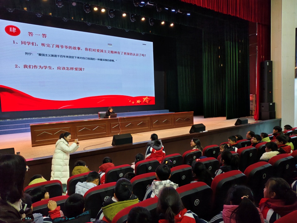 “为中华之崛起而读书”,这是周恩来少年时代就立志救国的一个缩影,也是他人格魅力的一个特色。故事会上,周恩来故居翔宇宣讲团成员程晨以“爱国”开题,“我们的国旗是什么颜色?”“升国旗时我们唱的是哪一首歌曲?”等问题,引导同学们加深对于爱国知识内容的理解与认识。