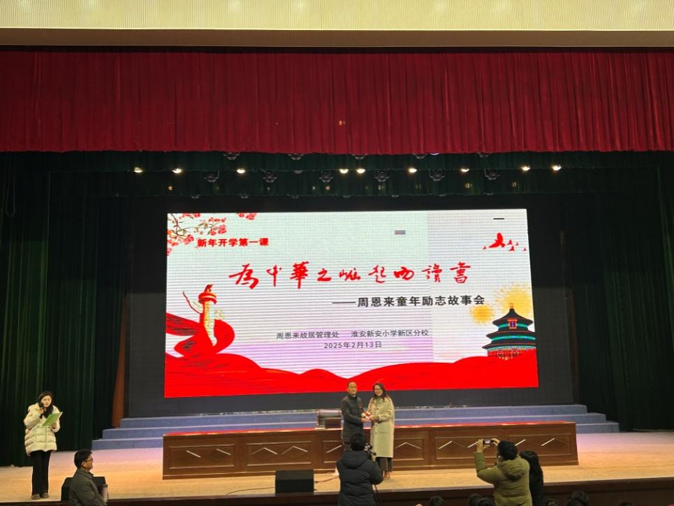 春风送暖,万物复苏。新年开学第一天即2月13日下午,周恩来故居管理处联合淮安市新安小学新区分校开展的“为中华之崛起而读书——周恩来童年励志故事会”在该校报告厅隆重举行,500多名学生代表现场聆听。周恩来故居管理处主任李子权、副主任陈国冠,淮安市新安小学新区分校校长张善军、副校长乔翠红等参加活动。