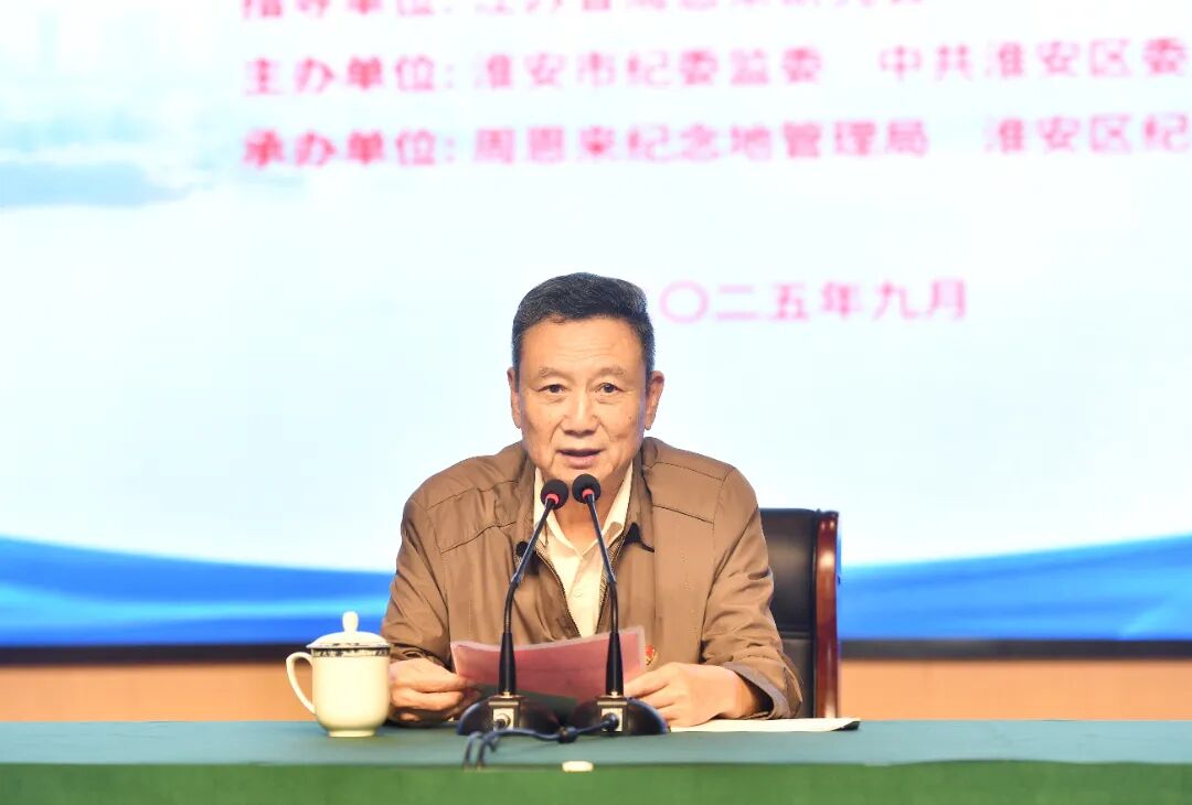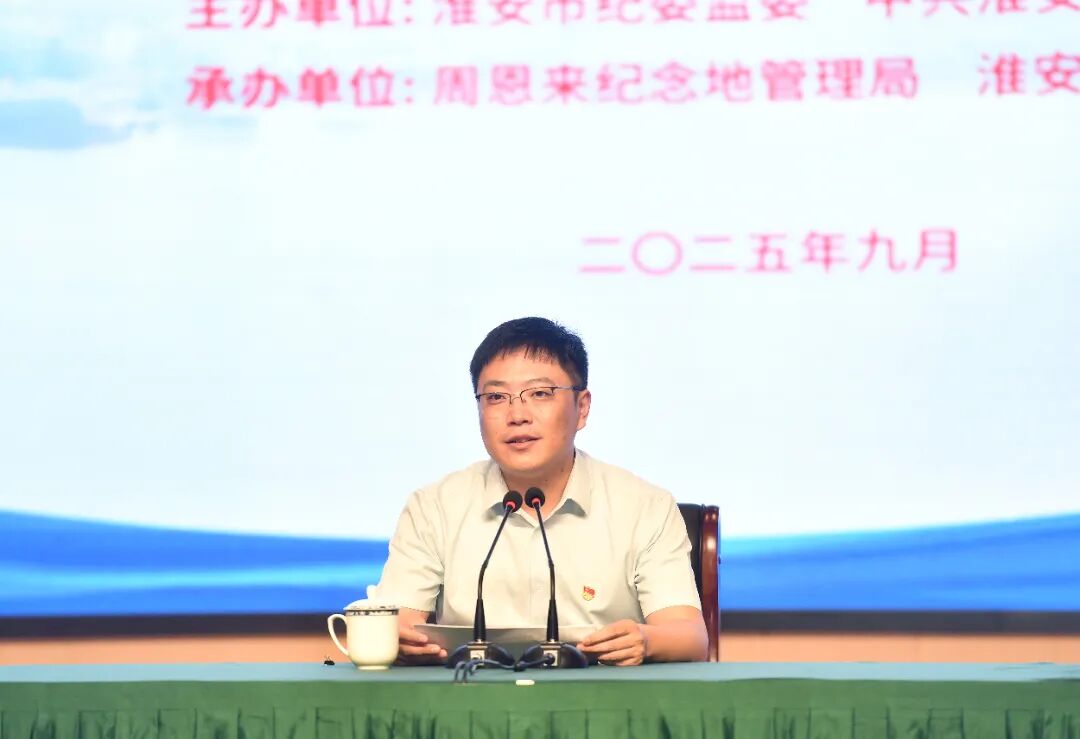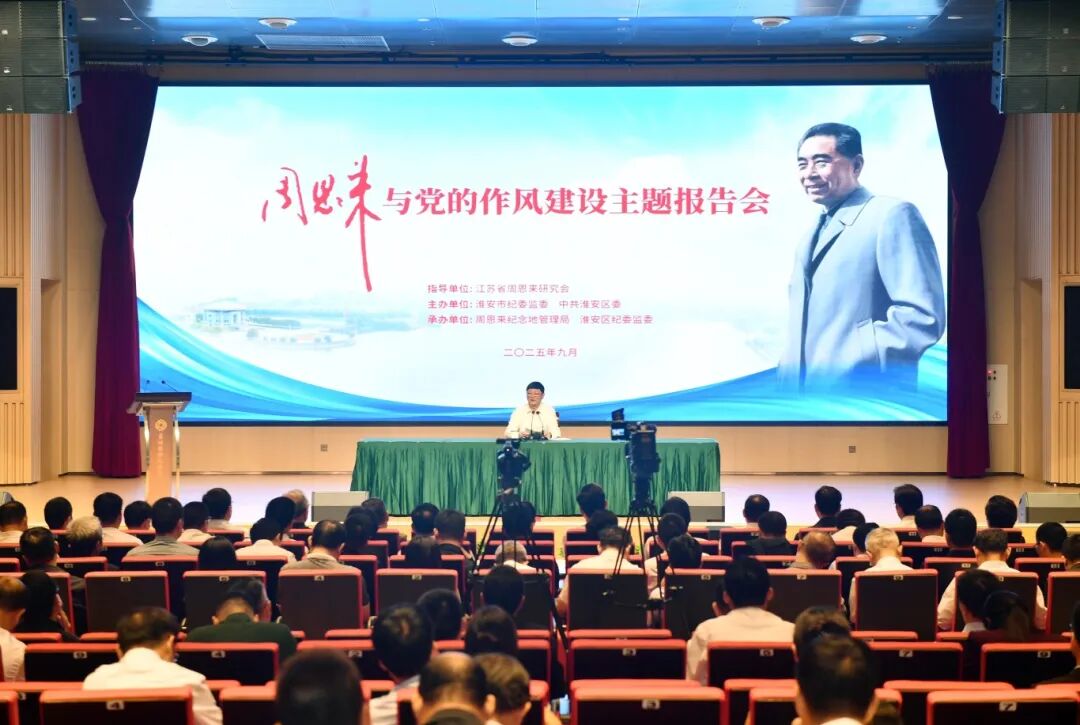 史志军代表淮安向来宾表示热烈欢迎和衷心感谢。史志军说,周恩来不仅是一个光荣不朽的名字,也是一份永恒的城市荣耀、一笔宝贵的精神财富,更是强化党的作风建设、深化全面从严治党的最好镜子。我们将认真用好本次报告会成果,自觉把弘扬周总理优良作风作为锤炼党性、砥砺初心的终身课题,深度挖掘“六个杰出楷模”的丰富内涵和时代价值,巩固拓展学习教育成果,锲而不舍落实中央八项规定精神,健全作风建设长效机制,更好传承伟人风范、凝聚奋进力量、加快跨越赶超,在江苏挑大梁中彰显更大作为、作出更大贡献。