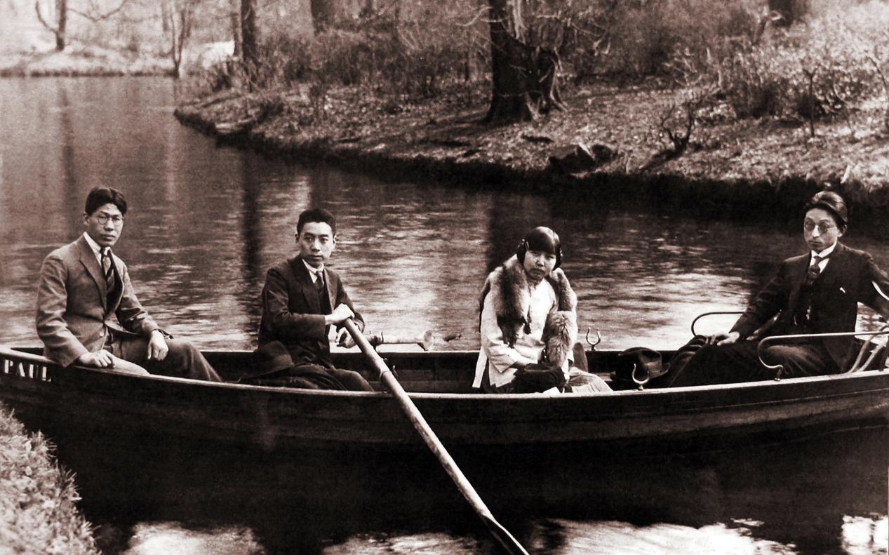 1921年春,经张申府、刘清扬介绍,加入中国共产党八个发起组织之一的巴黎共产主义小组,成为中国共产党的创建人之一。这是周恩来与张申府、刘清扬、赵光宸在柏林万赛湖。