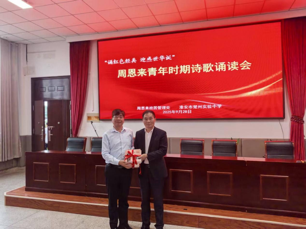 诵读环节结束后,周恩来故居管理处向楚州实验中学赠送《为中华之崛起而读书》《人生第一堂课——周恩来的家教故事》等励志读物、周恩来励志格言墨迹作品。这些书籍与格言,作为周恩来崇高品质的有形载体,为青少年思想道德建设提供了丰厚滋养。