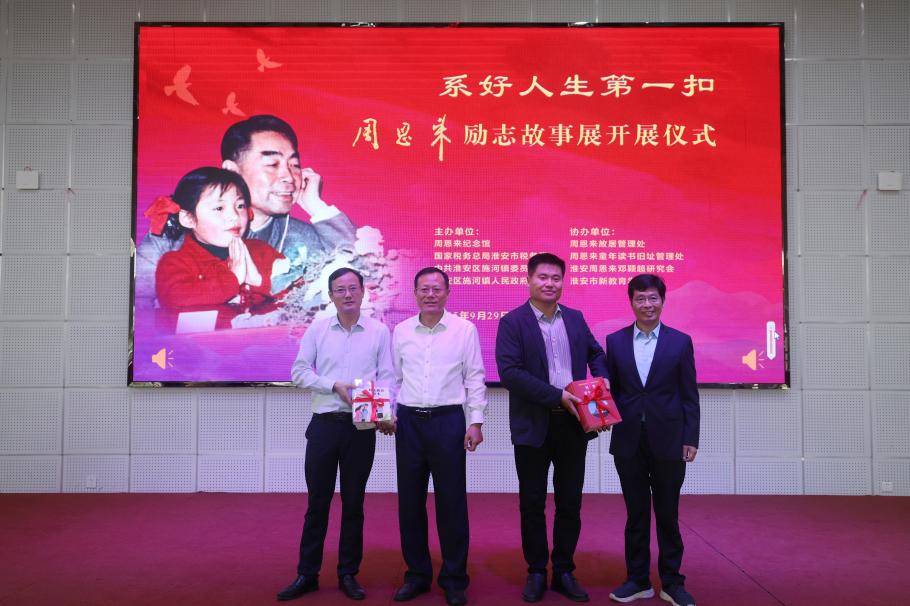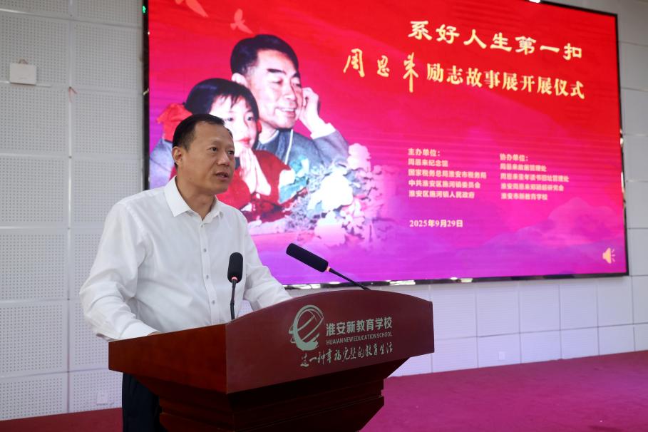 9月29日,《系好人生第一扣——周恩来励志故事展》巡展活动走进淮安市新教育学校,周恩来纪念地管理局副局长施春生,国家税务总局淮安市税务局副局长张杰,施河镇镇长刘美林以及淮安市新教育学校师生代表等共同出席活动。活动在学生们《灯火里的中国》悠扬的歌声中拉开序幕。