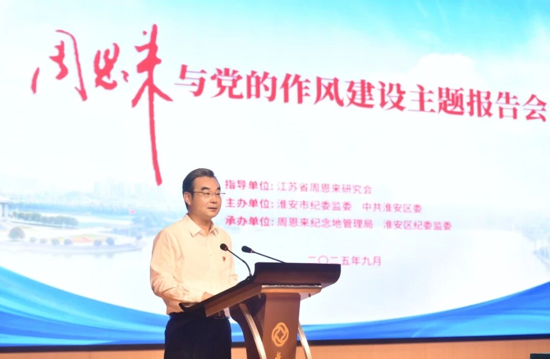 为传承弘扬周恩来同志的优良作风,巩固拓展深入贯彻中央八项规定精神学习教育成果,推动作风建设常态化长效化,近日,在江苏省周恩来研究会指导下,由淮安市纪委监委、中共淮安区委联合主办,周恩来纪念地管理局、淮安区纪委监委共同承办的“周恩来与党的作风建设”主题报告会暨《党风楷模——周恩来》主题展在淮安成功举行。