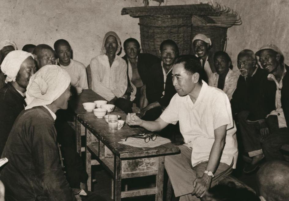 1961年4月,周恩来与农民一起算庄稼收入账。