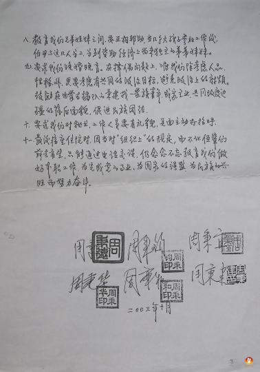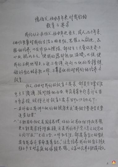 周恩来侄儿侄女周秉德、周秉钧、周秉宜、周秉华、周秉和、周秉建兄妹六人签名的《忆伯父、伯母多年来对我们的教育与要求》,记录了周恩来对亲属的严格要求。