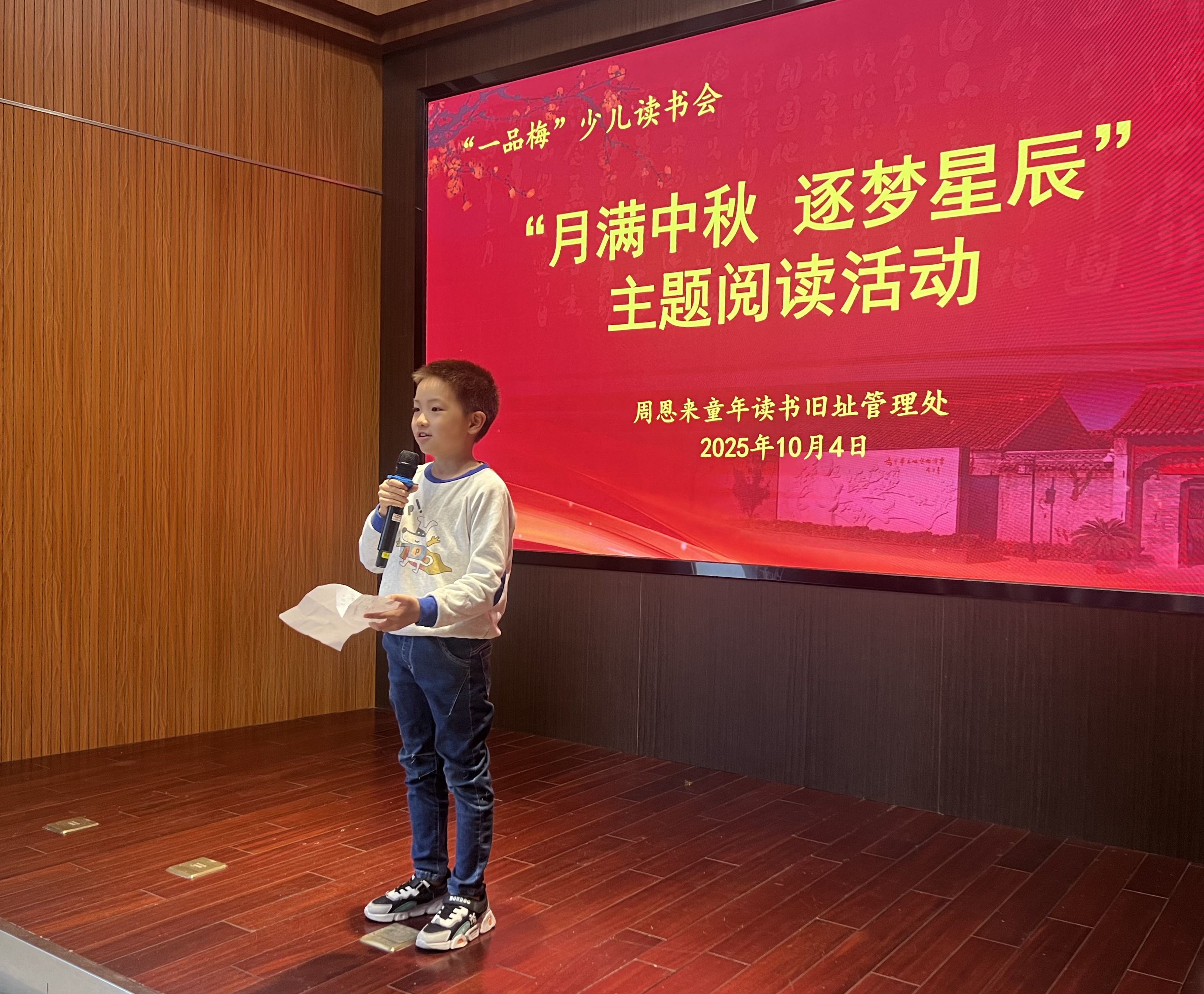 为传承中华优秀传统文化,激发青少年对航天科技的探索热情,10月4日下午,周恩来童年读书旧址管理处举办了“月满中秋 逐梦星辰”主题阅读活动。近30名“一品梅”少儿读书会的小会员以及江苏电子信息职业学院电子工程学院的大学生志愿者们参加本次活动。