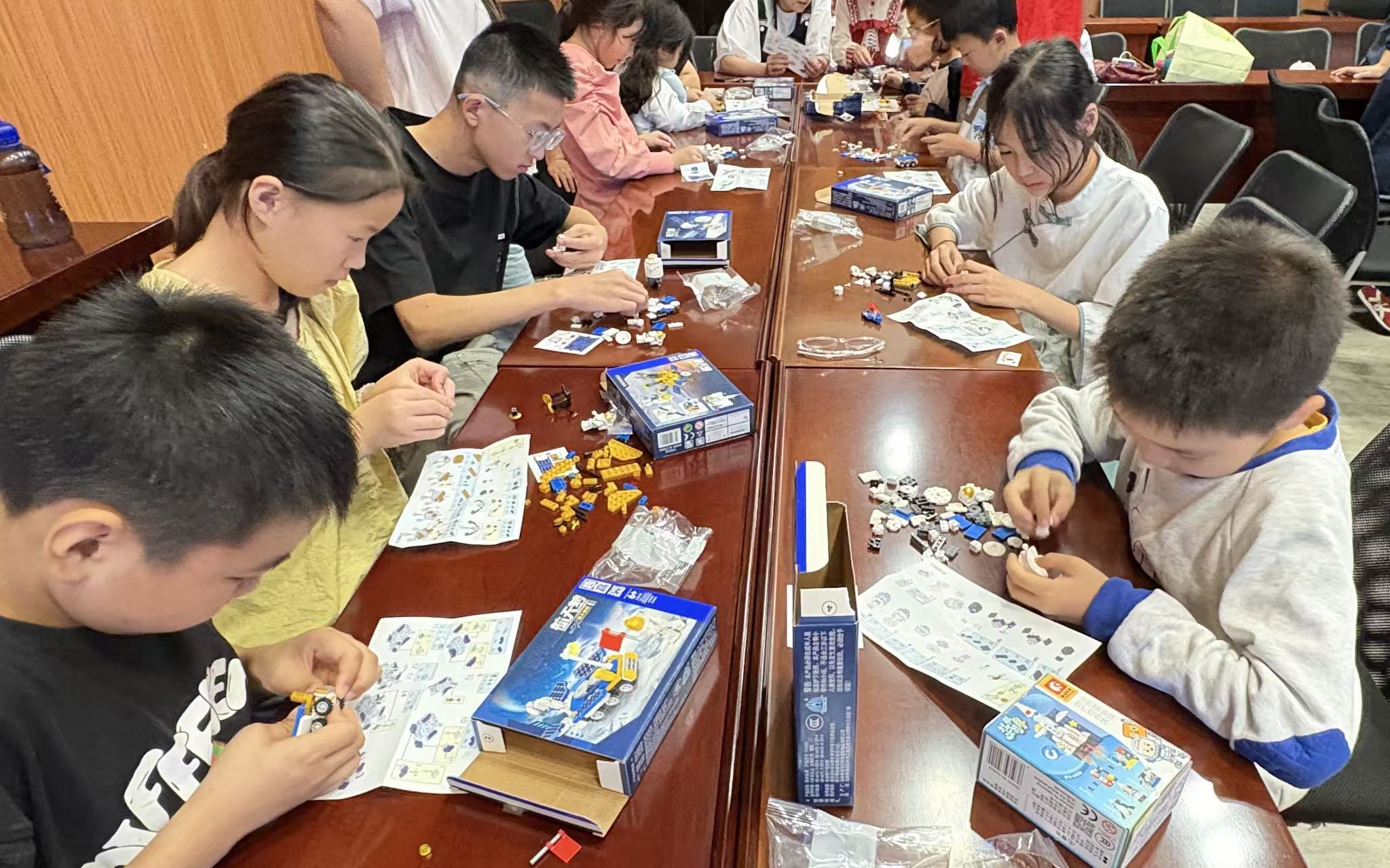 最后的“手工拼搭航天积木环节”将活动推向高潮,拿到积木后,孩子们迅速投入“战斗”状态,专注研究拼装图纸,小心翼翼地将一块块积木拼接成运载火箭、探月车、通信卫星等。大家不时交流拼装技巧,遇到困难时相互帮忙,在动手实践中进一步感受航天科技的神奇。