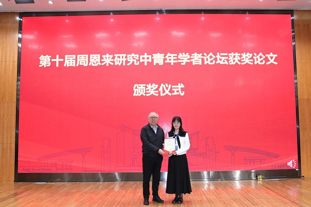 江苏财经职业技术学院党委书记、江苏省周恩来研究会副会长闫超栋宣读了中青年学者论坛获奖名单。本次论坛共收到来自广东、湖南、陕西、江苏等省份专家学者的92篇论文,其中中青年专家学者论文79篇。经专家评审,13篇中青年学者论文获奖。我局共4人获奖,其中章金金获二等奖,赵鸿月、易行健、金毅三位同志获三等奖。主席台领导为获奖论文作者颁奖。