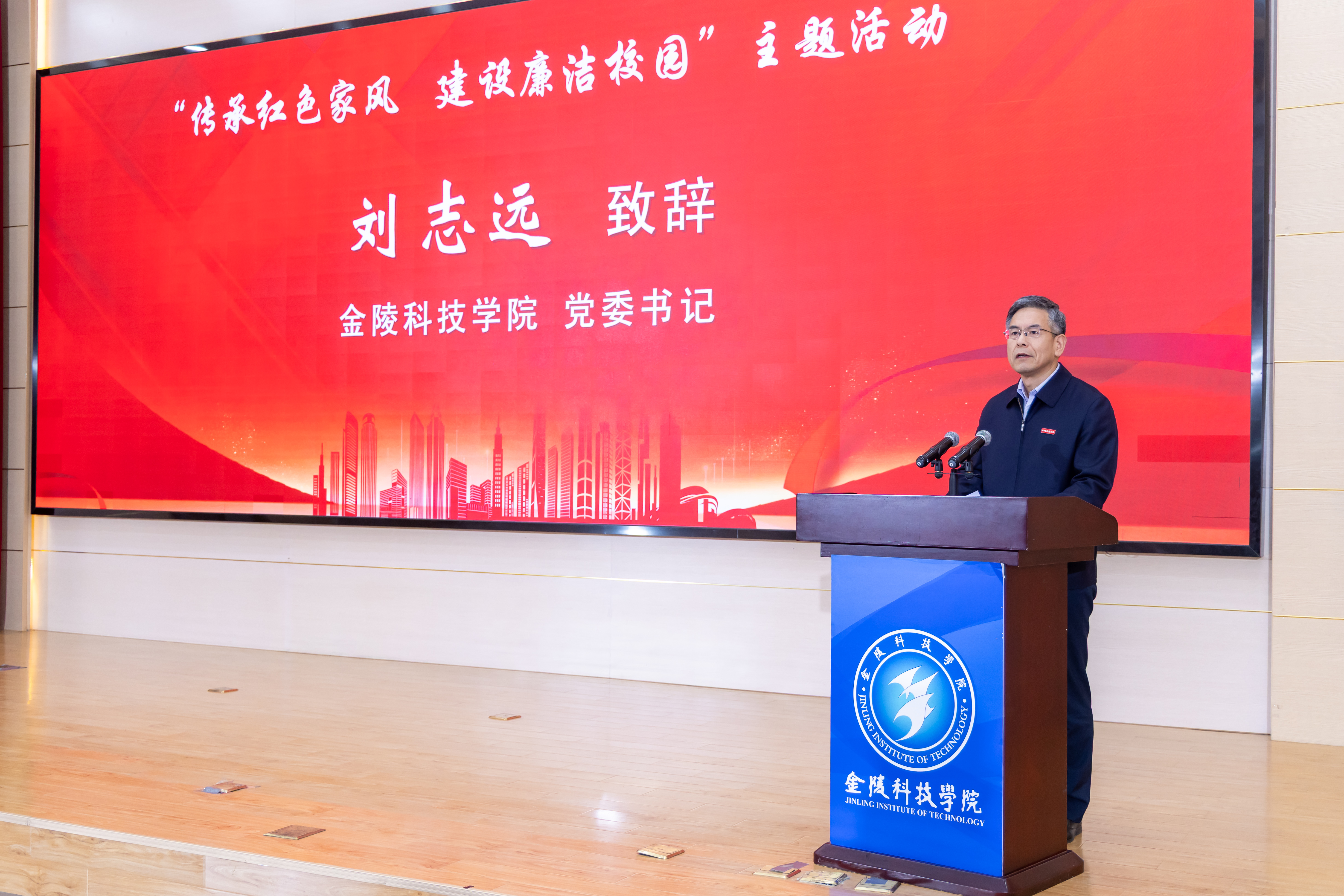 金陵科技学院党委书记刘志远首先致辞,对周恩来纪念地管理局一行的到来表示热烈欢迎。他强调,传承红色基因、弘扬优良家风是落实立德树人根本任务、建设廉洁校园的重要途径,期待通过馆校合作,将红色资源有效转化为育人优势。