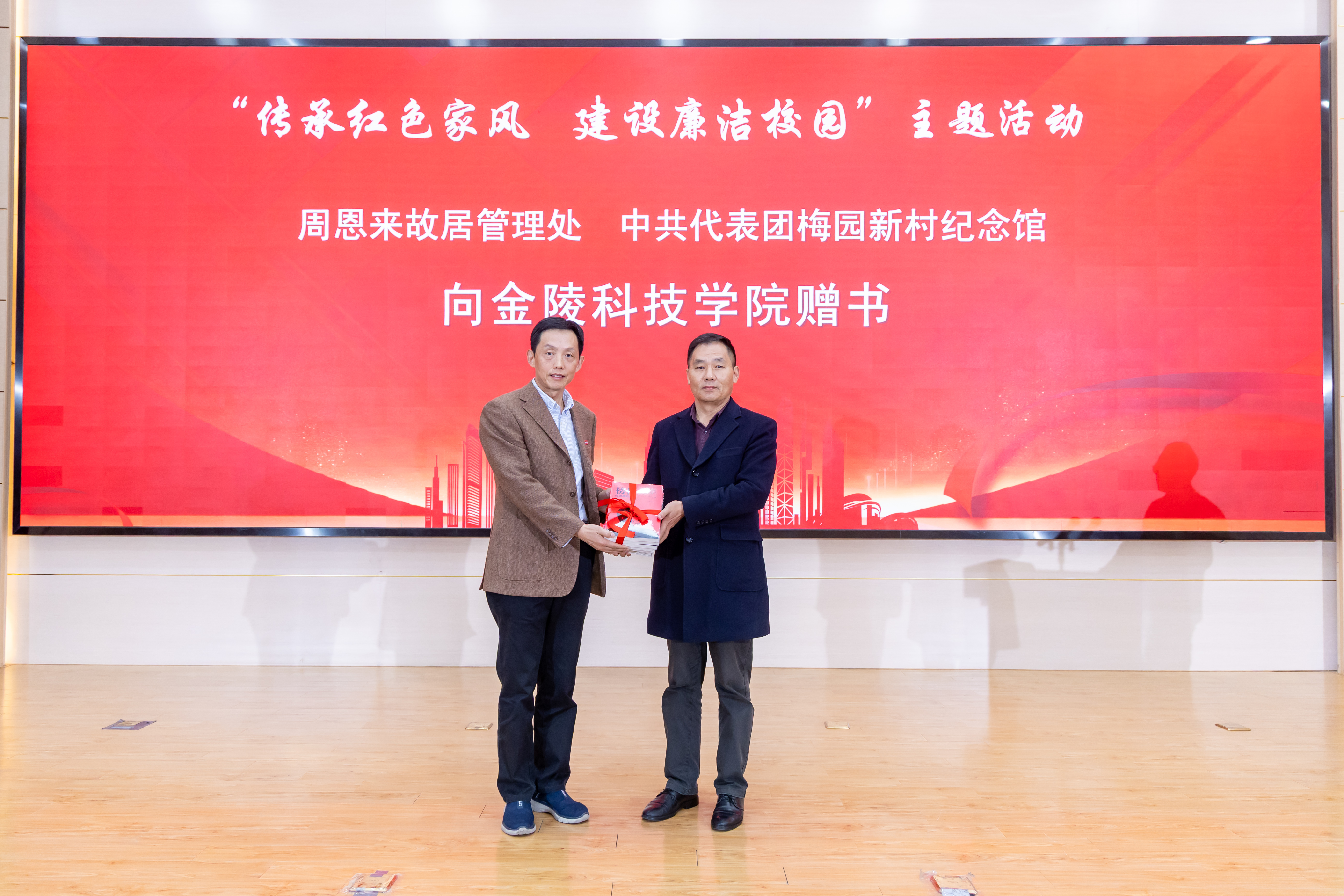 为深入学习弘扬周恩来崇高品质和优良家风,推动红色文化与廉洁校园建设深度融合,11月11日下午,周恩来纪念地管理局、中共代表团梅园新村纪念馆与金陵科技学院共同举办“传承红色家风 建设廉洁校园”主题教育活动。活动在金陵科技学院科技楼报告厅举行。