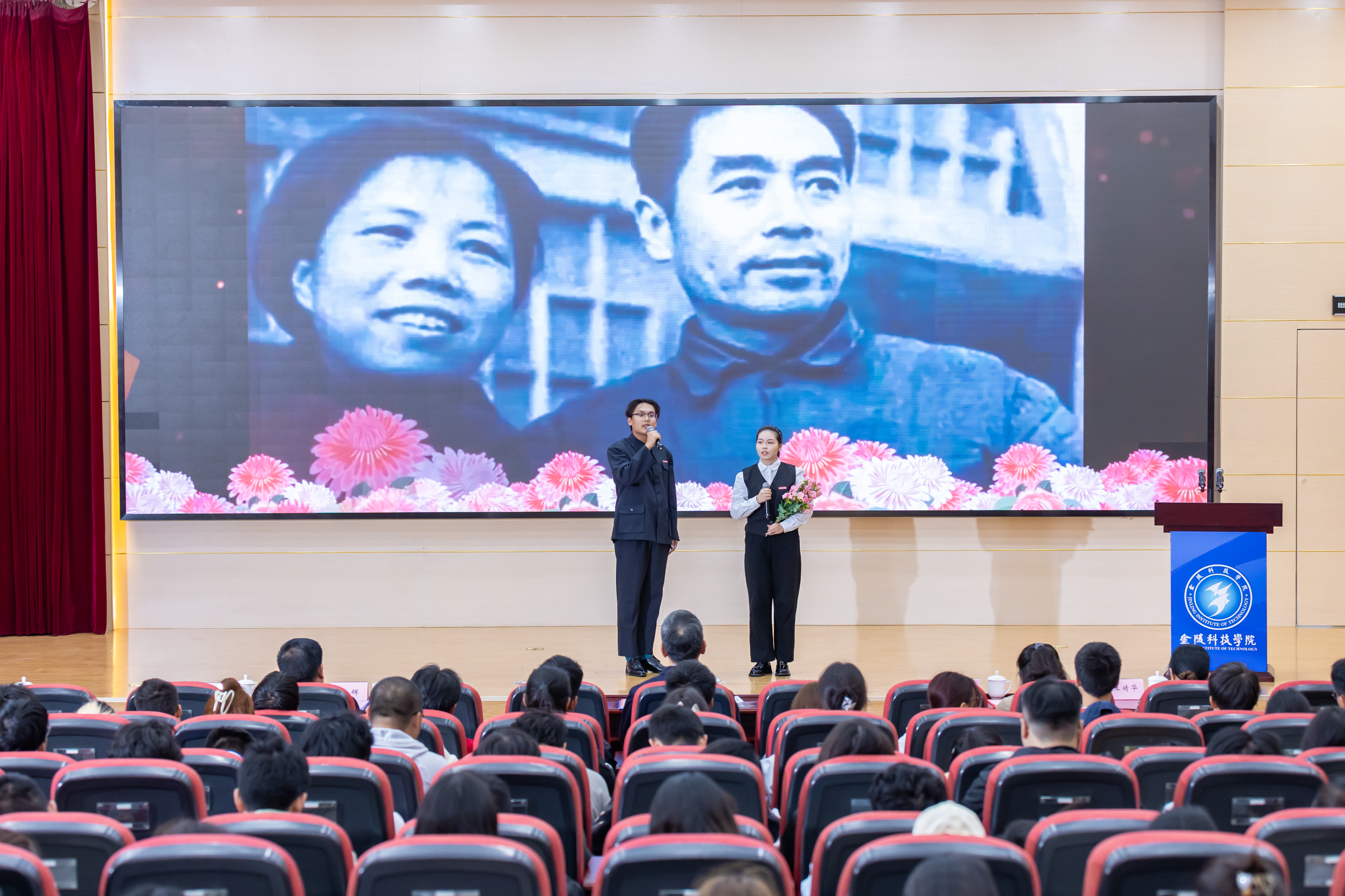随后,一系列形式多样、内容丰富的红色文化节目依次精彩呈现。周恩来故居管理处带来的思政微课《周恩来“过五关”崇高风范情景故事》,通过生动的情景演绎,深刻展现了周恩来同志在过“思想关”“亲属关”时的坚定信念与高尚情操;中共代表团梅园新村纪念馆的党史宣讲《延安的怀抱》,深情回顾了革命岁月的光辉历程与精神伟力;校大学生艺术团深情朗诵的《海棠花祭》,表达了对周恩来总理的无限追思与崇高敬意,情感真挚,感人至深。