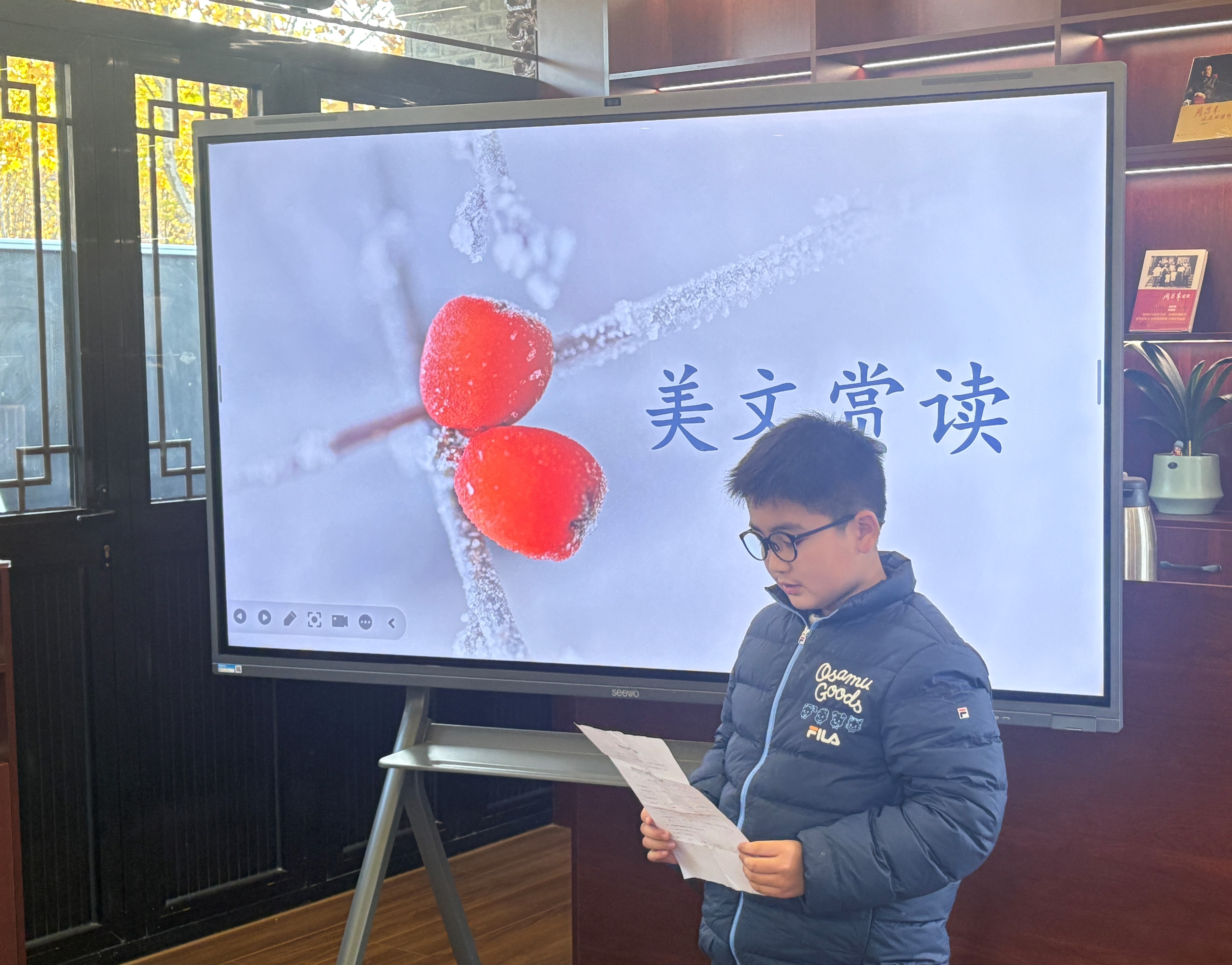 “美文赏读”环节中,小会员们带着精心挑选的冬季主题文学作品,依次分享朗读。大家在丰富的文字中欣赏到冰雪世界的奇绝景致,感受到生命在寒冬中展现出的坚韧力量,现场交流氛围热烈而温馨。