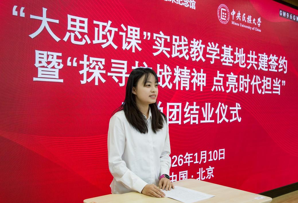 中央民族大学党委宣传部副部长李红亮表示,本次校馆携手共建实践教学基地,既是红色精神的接力传承,更是校馆协同落实立德树人根本任务、推进“大思政课”建设的生动实践,承载时代使命,意义深远厚重。跨越四地的研学之旅,将红色精神与民族团结教育深度融合,深化了师生对“中华民族一家亲”认知。他勉励同学们要把研学中汲取的“正气”“真理”“人格”力量转化为奋进动力,在维护民族团结、服务国家发展的实践中书写青春答卷,同时希望以此次合作为契机,持续深化协同育人,共同打造“大思政课”建设典范。