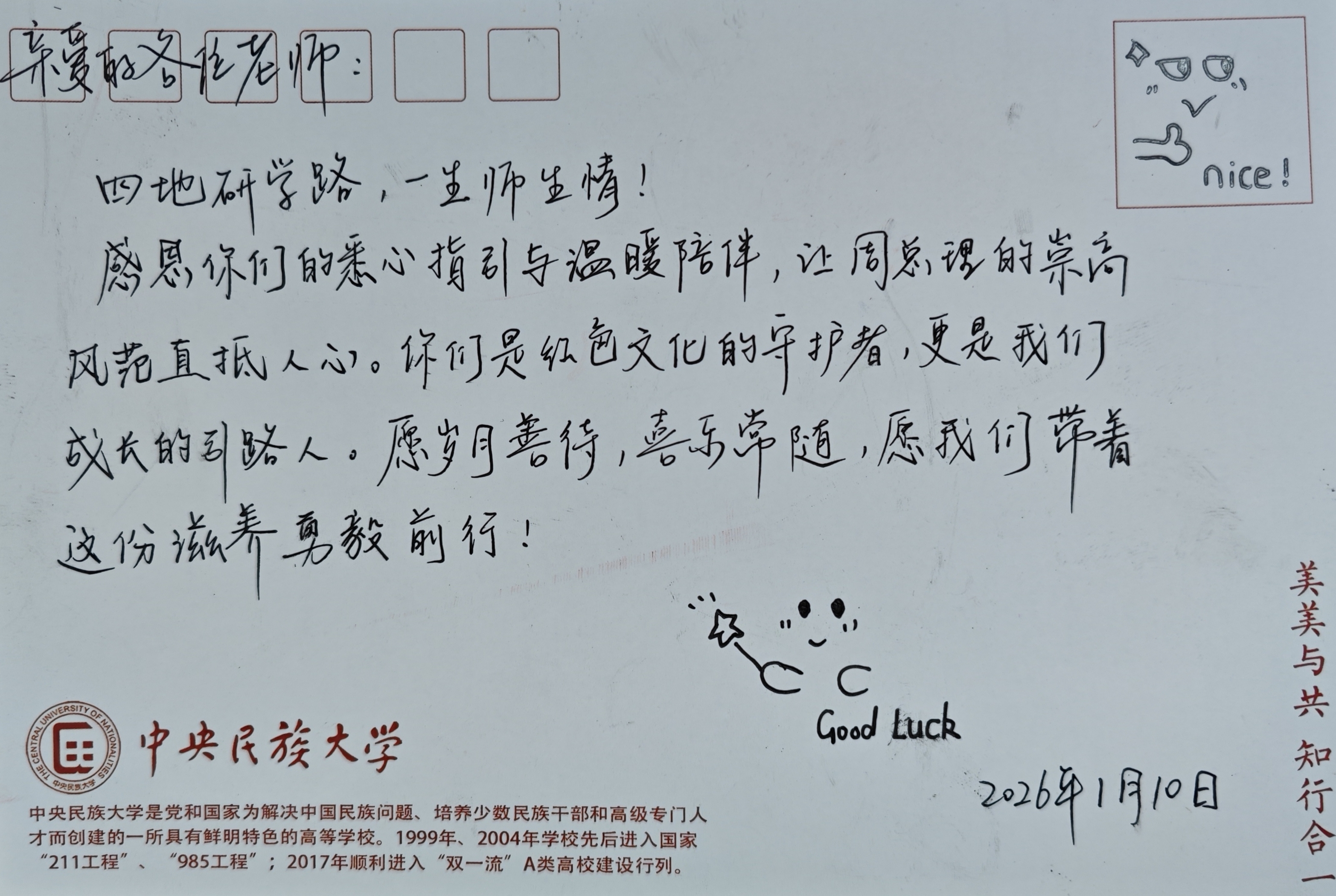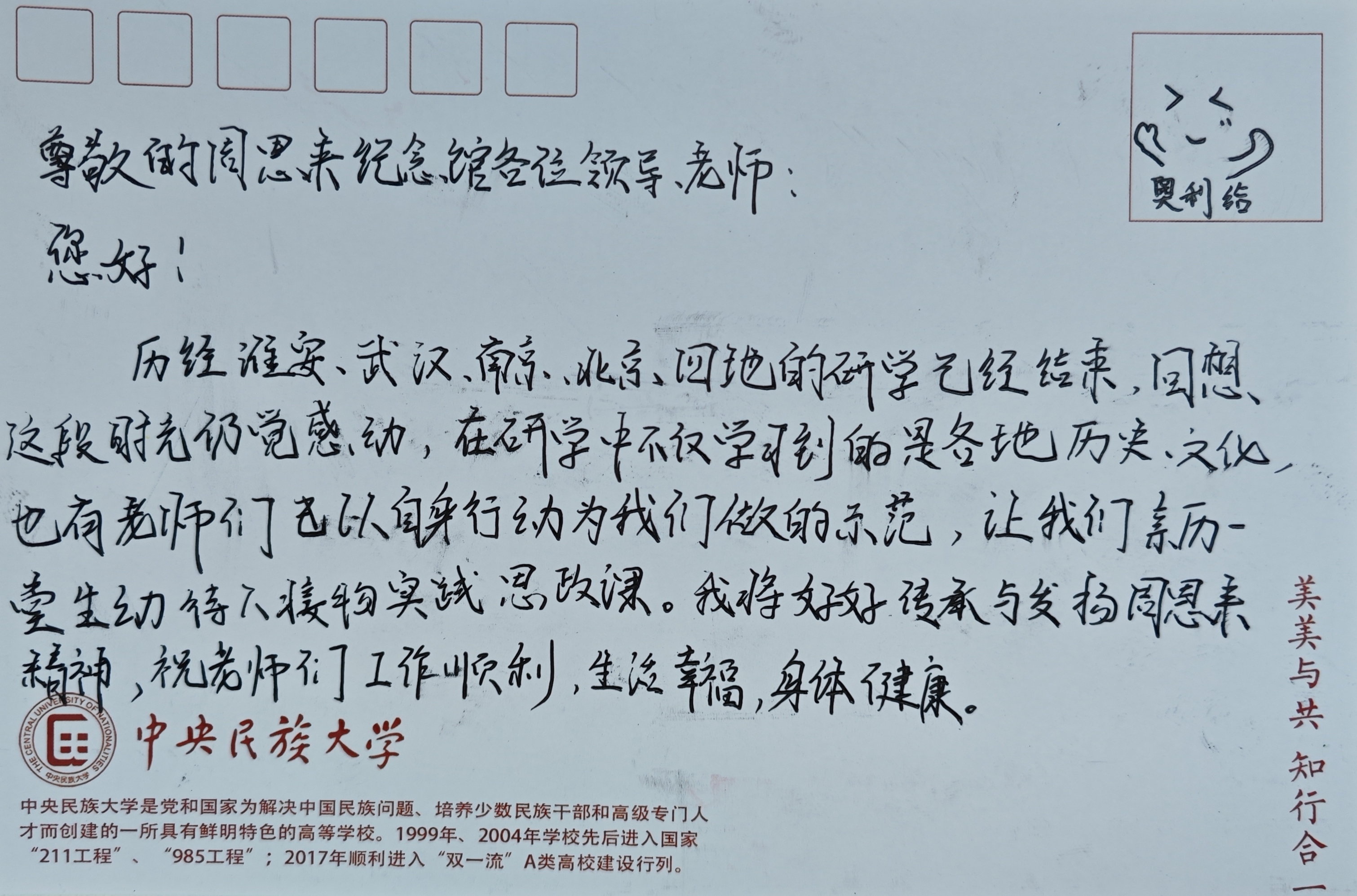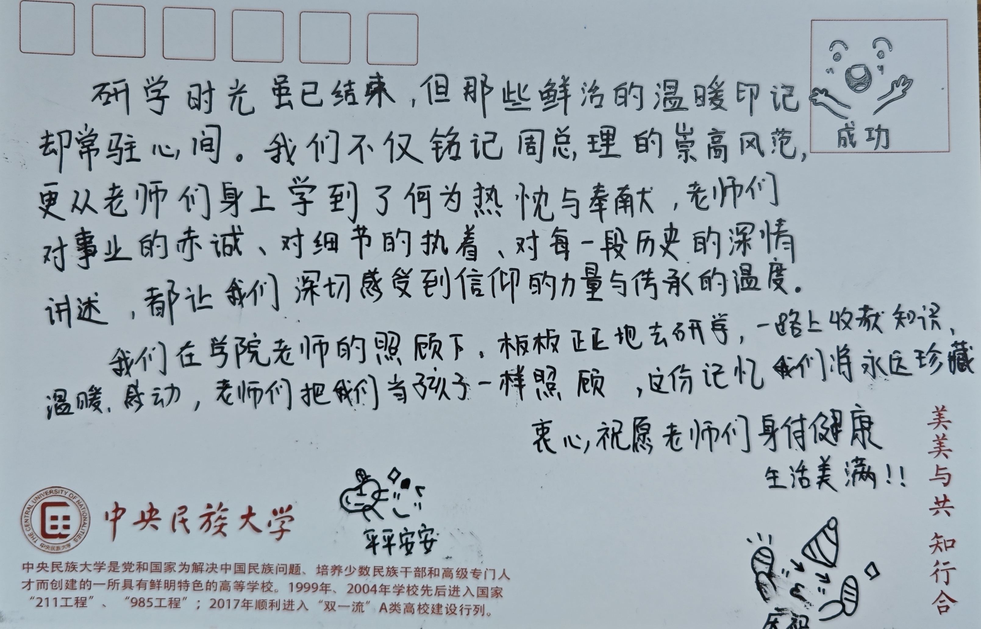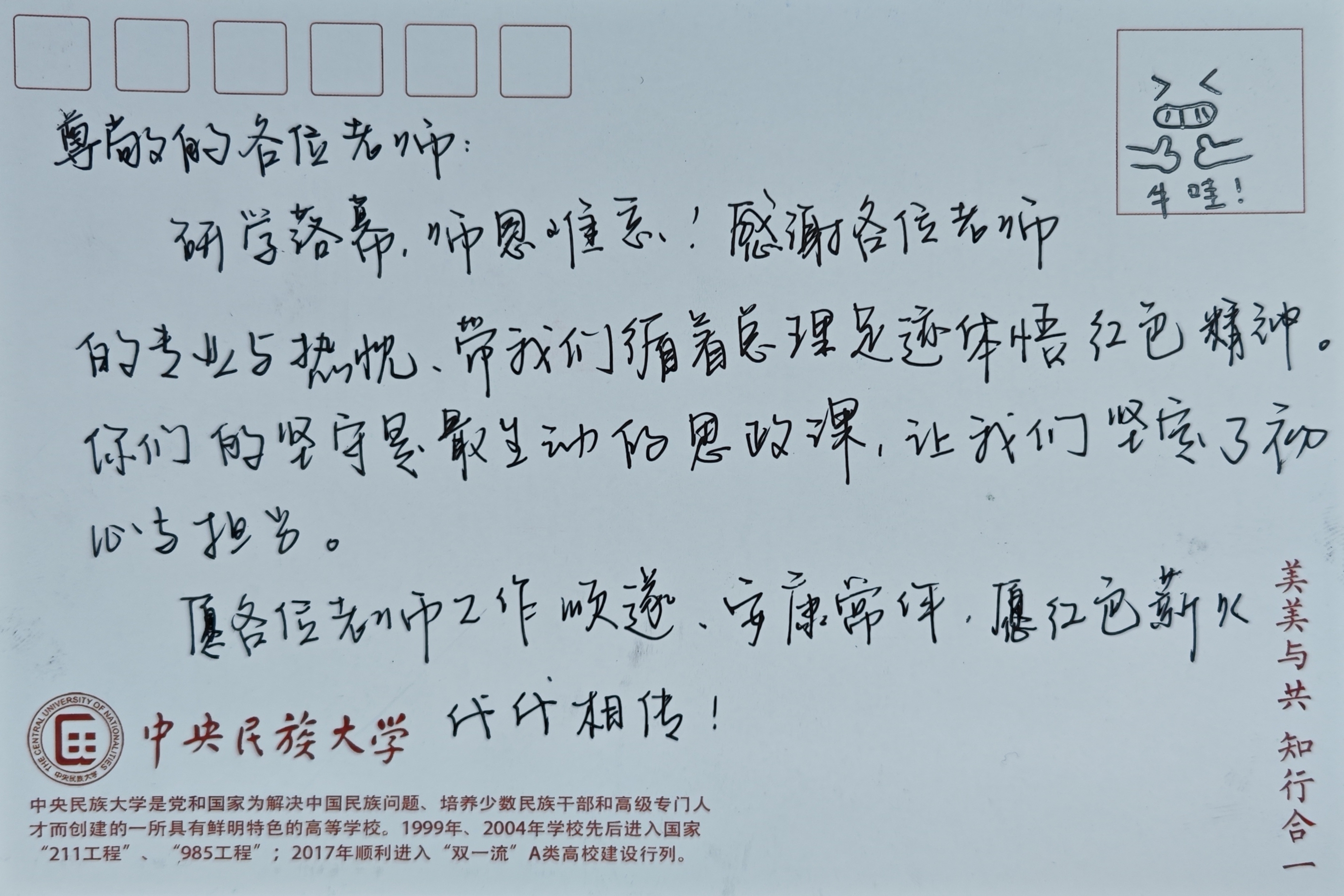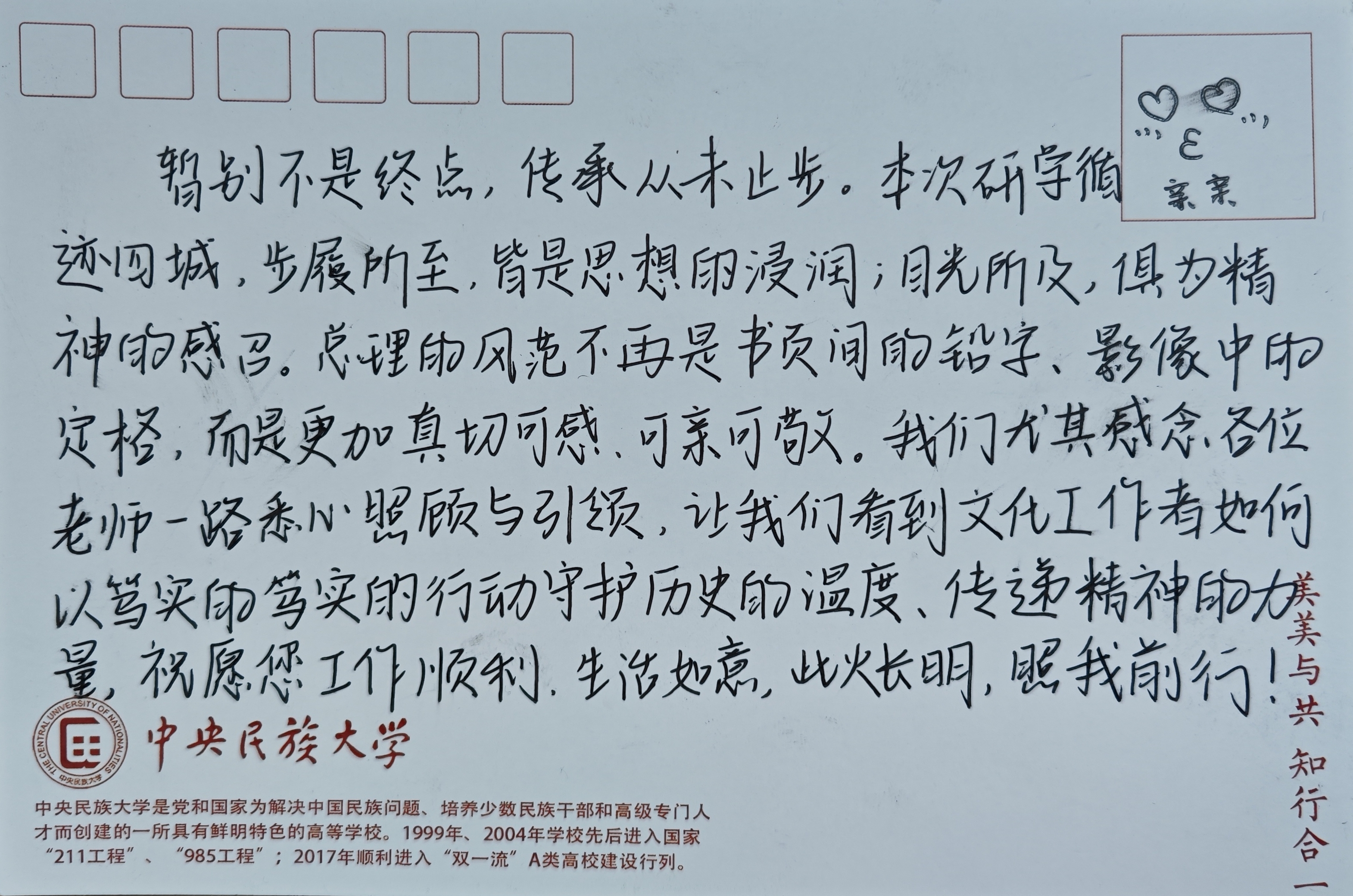 卡片寄语:一纸短笺寄感念 赓续初心再前行