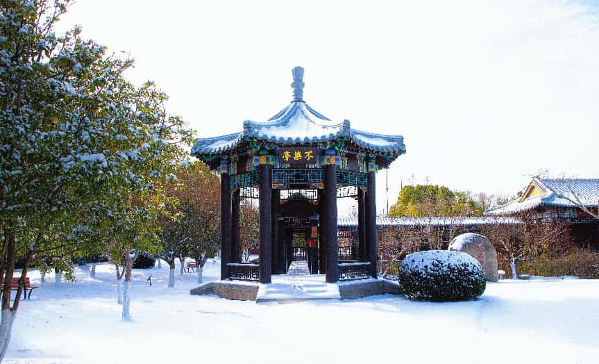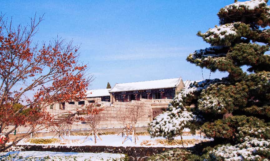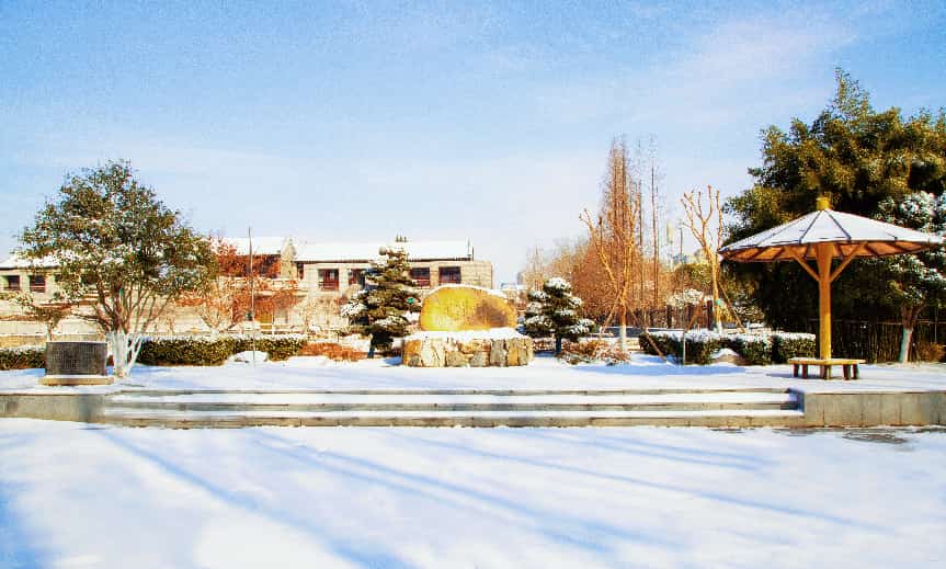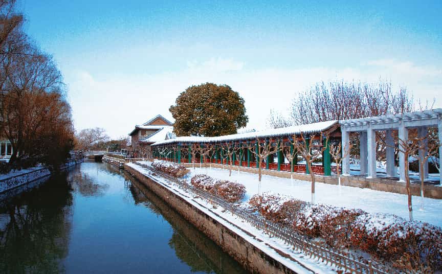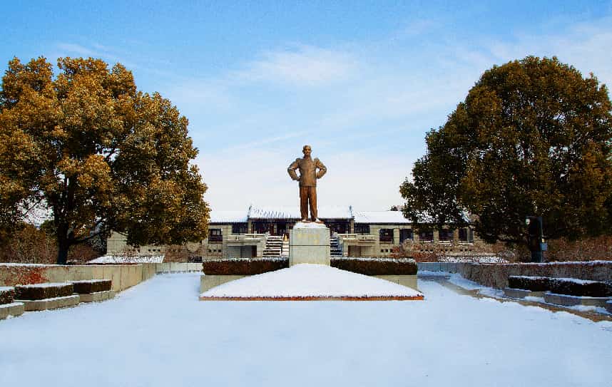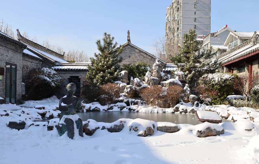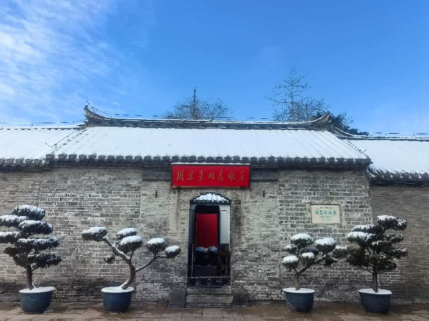 2026年的初雪漫落,素白轻覆周恩来纪念馆主馆、铜像广场与西花厅,清波映着银装,天地间尽是清宁肃穆。一品梅的金黄芳蕊傲立霜雪,暗香绕着青砖黛瓦,与漫天飞白相映,风骨凝香,岁岁思怀。