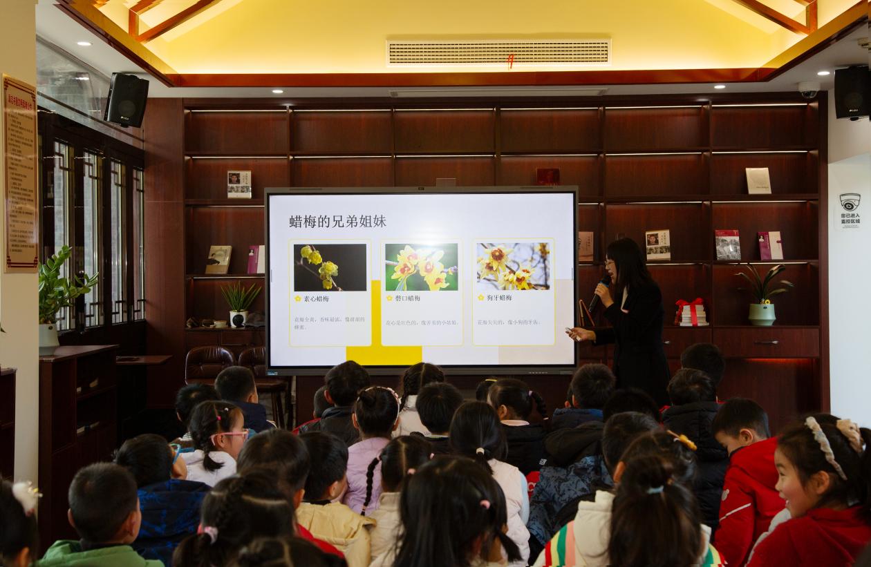 在“蜡梅小课堂”上,工作人员为同学们讲解了与梅花相关的知识,分享了周恩来与梅花的故事,让同学们在互动中进一步深化对“一品梅”与周恩来崇高品质的理解。