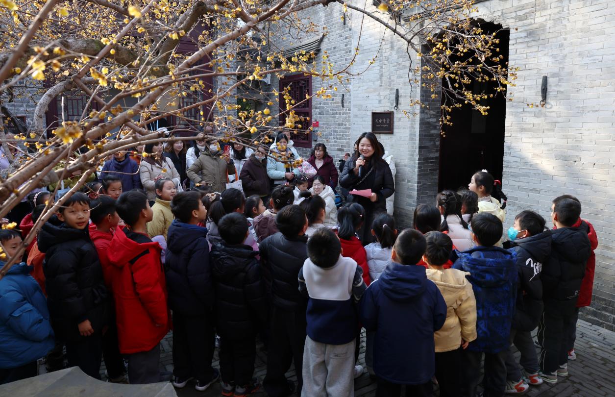 在“一品梅”树下,语文老师王晶带领全体同学齐诵蜡梅童谣,清脆的童声与冬日梅香交织,为活动增添了别样的温情与韵味。