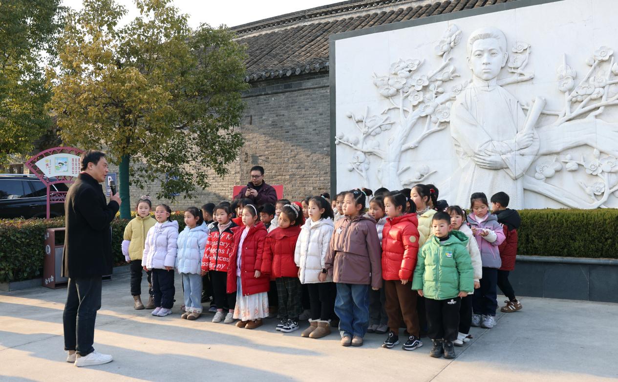 为引导青少年传承红色基因、树立崇高理想、培养良好的阅读习惯,2月2日下午,淮安市生态文旅区枫香路小学一(9)班走进周恩来童年读书旧址,开展以“为中华之崛起而读书”为主题的研学读书活动。本次活动也是“‘为中华之崛起而读书’——阅中翱翔青少年阅读实践项目”启动以来的首期活动。