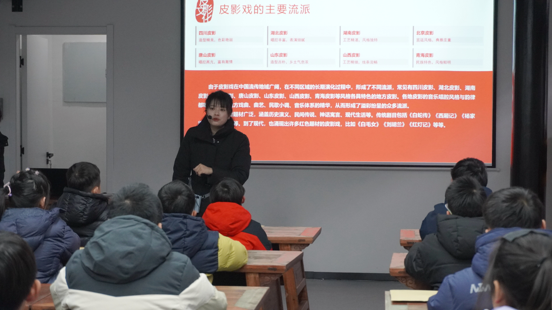 活动在轻松活泼的氛围中拉开帷幕。指导老师通过图文并茂的讲解和互动提问,生动梳理了皮影戏跨越千年的发展脉络——从汉代的起源传说,到唐宋的繁荣兴盛,再到其对外传播与流派演化。有趣的问答环节,让孩子们在积极参与中加深了对这项非物质文化遗产的理解。